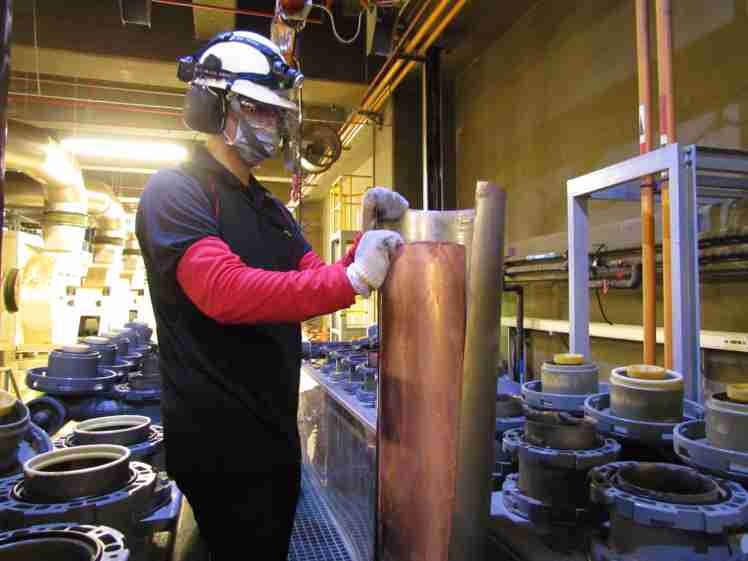 MG电玩将废弃物转化成有效的工业或民生原物料,,图为废铜液淬炼后再制成纯度极高的铜管