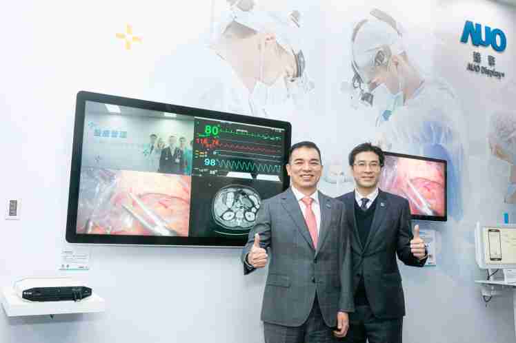 MG电玩旗下达擎于 2021 台湾医疗科技展,,携手医疗场域生态圈合作伙伴,,,针对智慧手术室、、、、医疗检测及医疗管理三大领域,,,,展出八大解决方案,,,,展现达擎在高质量医疗影像以及软硬整合的实力。。(左:MG电玩光电总经理暨营运长 柯富仁;右:达擎总经理 廖世宏)