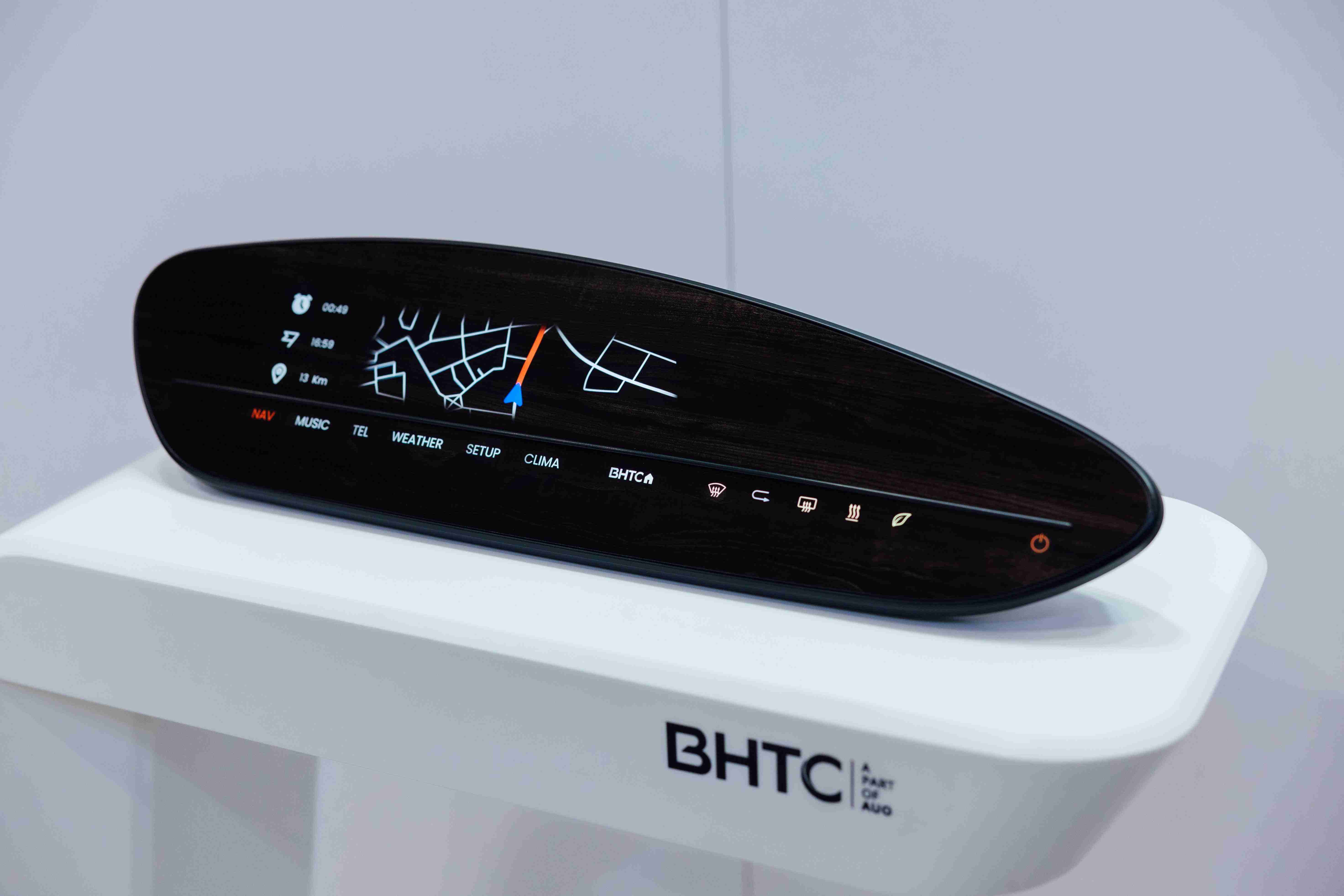 BHTC的木纹车用显示器(Display Behind Wood)将无缝木质表面与显示器结合后,,,,可以融入车内设计中,,提供驾驶优质的视觉效果,,,加上其无边框的设计和亮度调控,,,创造更优质的车内体验。。
