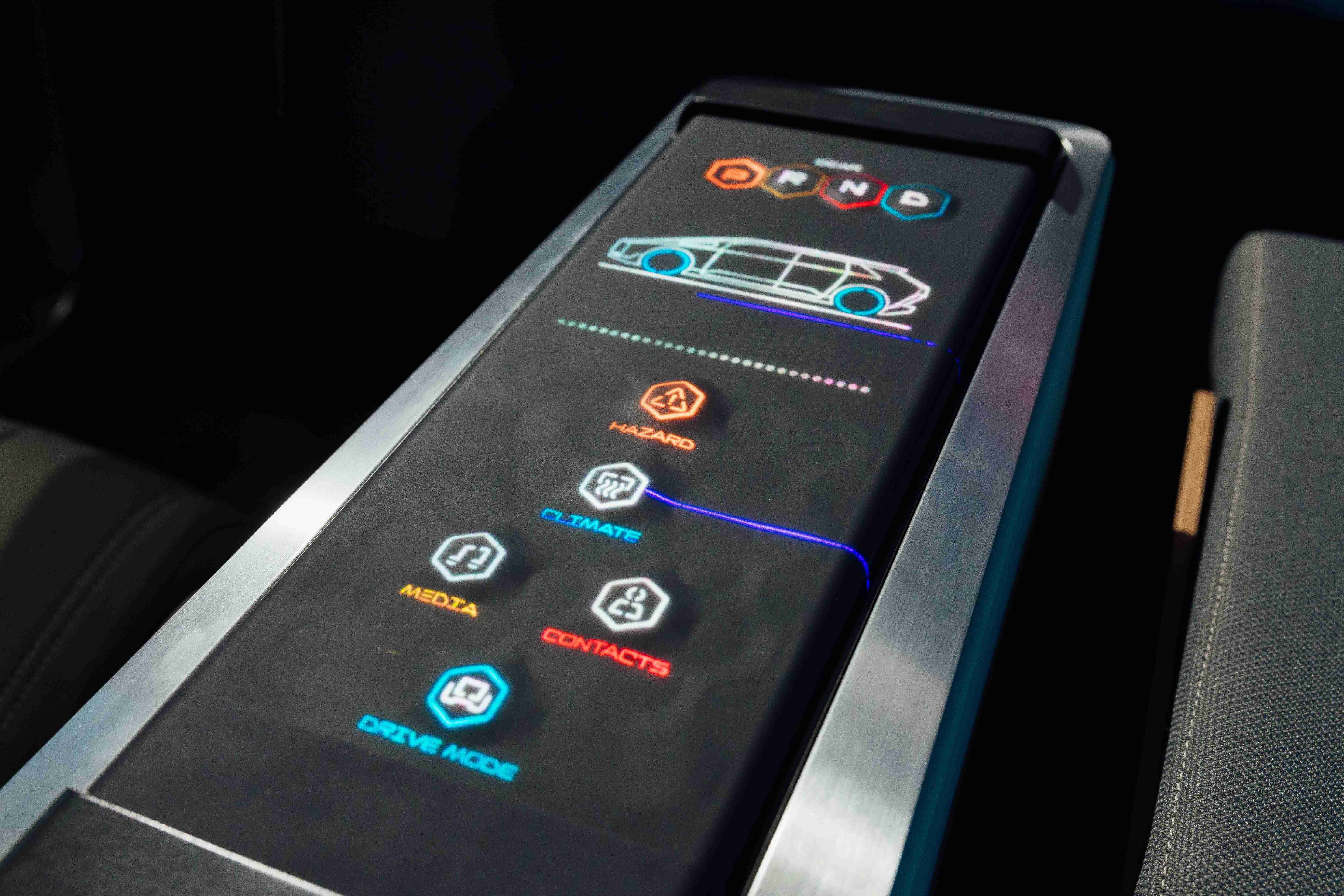 多变形态中控显示(Morphing Center Control)拥有动态变化的表面,,,平时常态显示车辆功能,,进一步操作时,,,,则会隆起成为3D 按钮,,,并在触控时以震动回馈,,,,以精细的操作开创人机互动新境界。。。