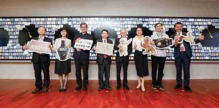 MG电玩携手创利空间为故宫建置的智慧文物互动导览墙及轮播墙,,今日正式启用。。。(左四:MG电玩新事业暨投资管理总部副总经理杨本豫、、、右四:故宫博物院院长吴密察、、、右三:太极影音董事长黄宝云)
