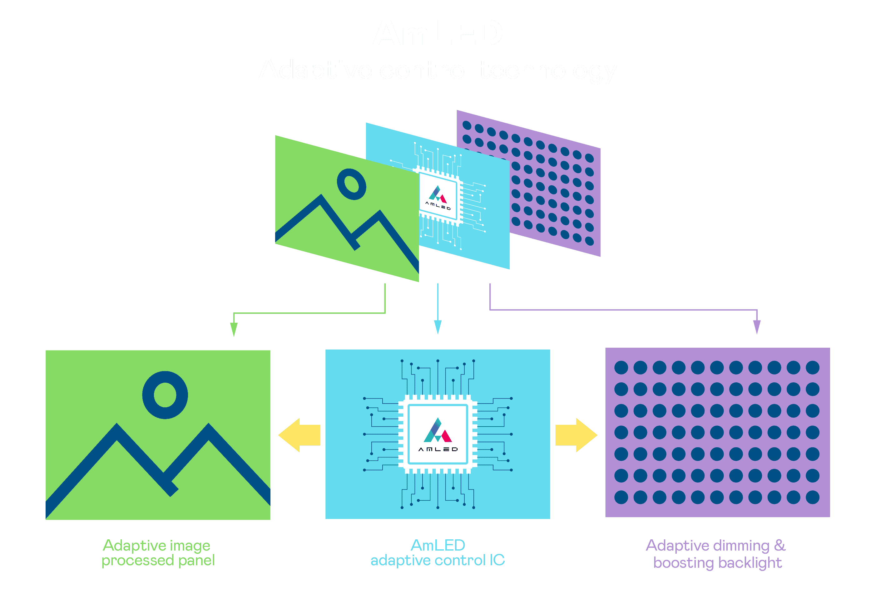 AmLED 具备更省电与低蓝光特性。。。与一般的 LED 背光显示技术相比,,,由于 AmLED 常时处于局部调光状态,,,,其功耗仅有前者的 50% 左右,,,同时 AmLED 还具备低蓝光特性,,,满足长时间使用的护眼需求。。。。